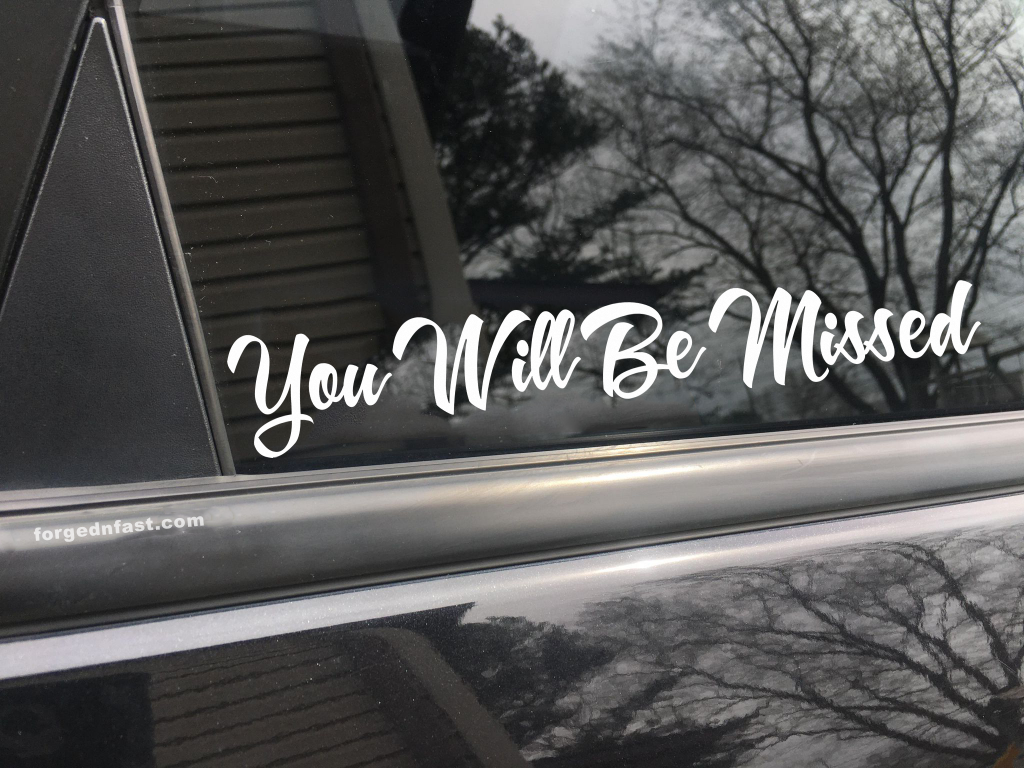 Ready to add some personality and fun to your vehicle? Check out the *”You Will Be Missed”* bumper sticker available at Forged N Fast: [https://www.forgednfast.com/product/you-will-be-missed-car-decal-bumper-sticker-truck-decal-funny-car-decal/](https://www.forgednfast.com/product/you-will-be-missed-car-decal-bumper-sticker-truck-decal-funny-car-decal/). It’s an affordable, easy way to make your car stand out and show off your sense of humor!
