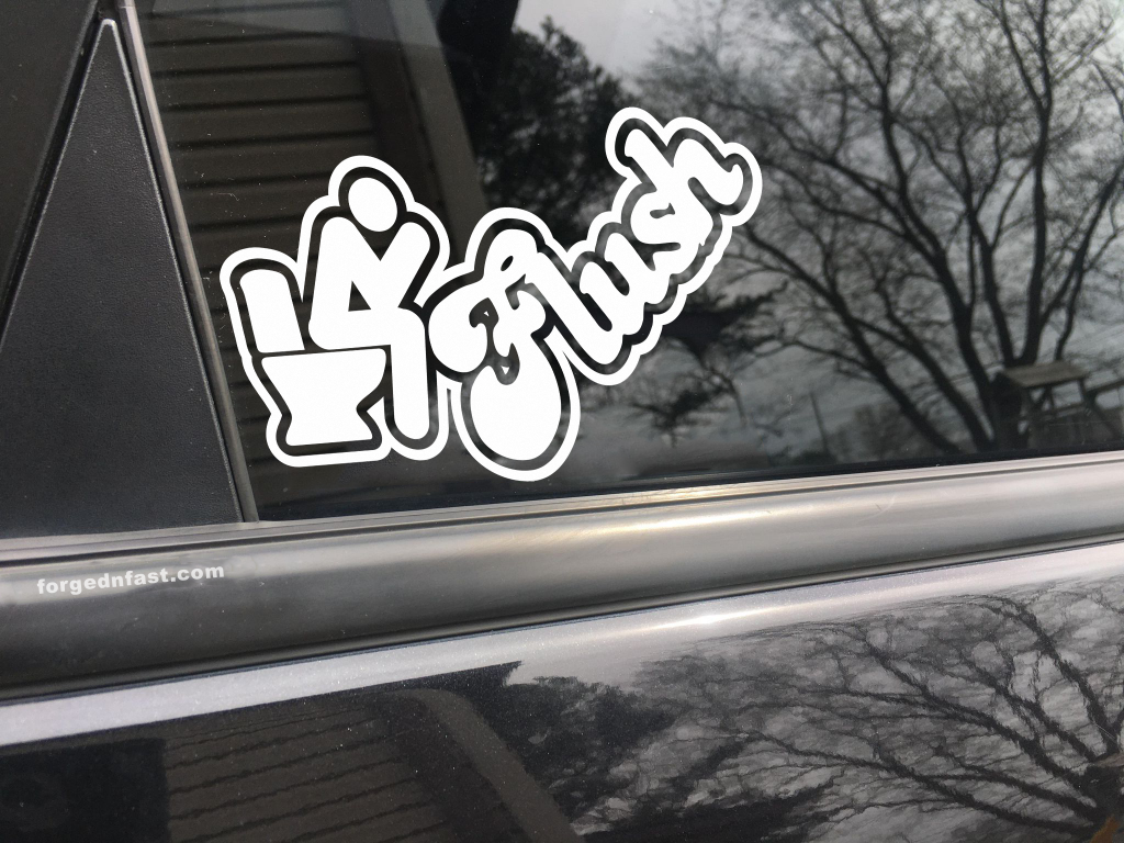Rev up your vehicle’s personality with the perfect blend of humor and style—introduce the **Flush Car Decal Bumper Sticker** from