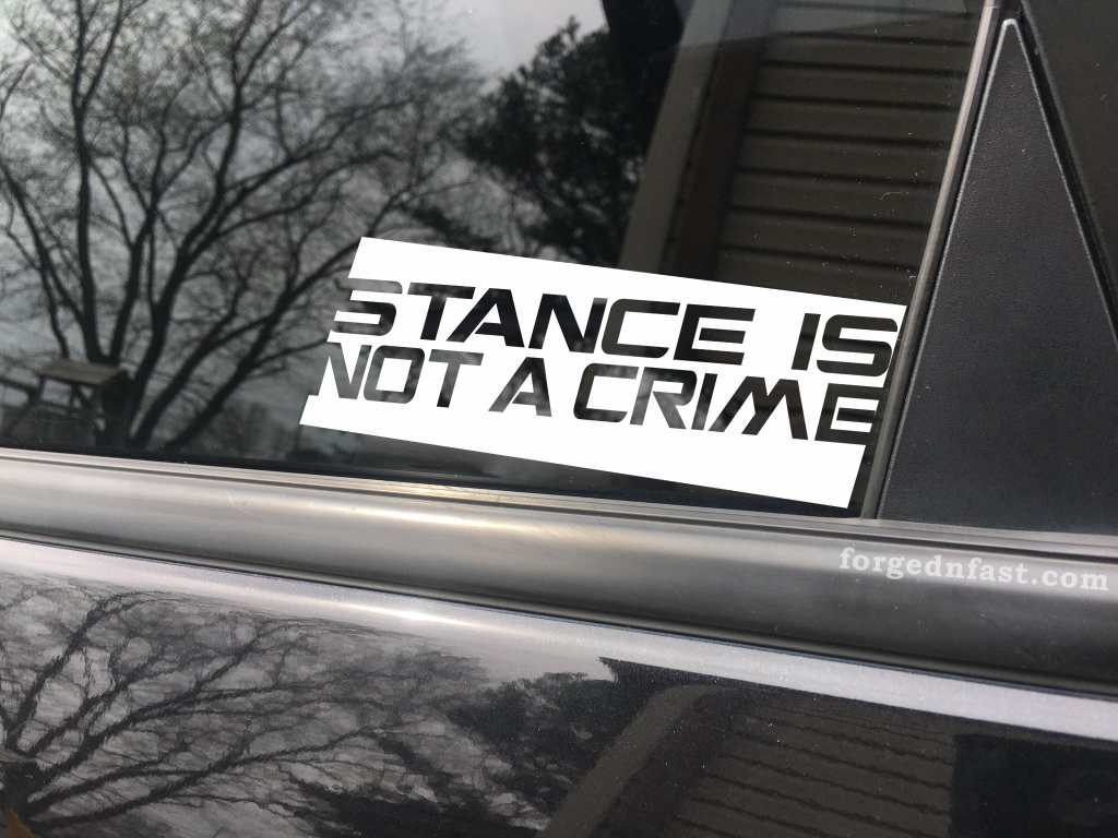 Ready to make a statement? Elevate your ride with the “Stance Is Not a Crime” vinyl decal today. Visit [forgednfast.com](https://www.forgednfast.com/product/stance-is-not-a-crime-car-decal-bumper-sticker-truck-decal-funny-car-decal/) to order now and showcase your stance pride with style and attitude!