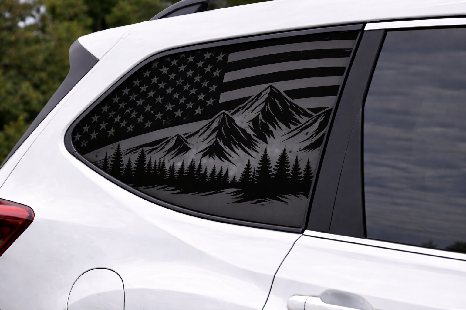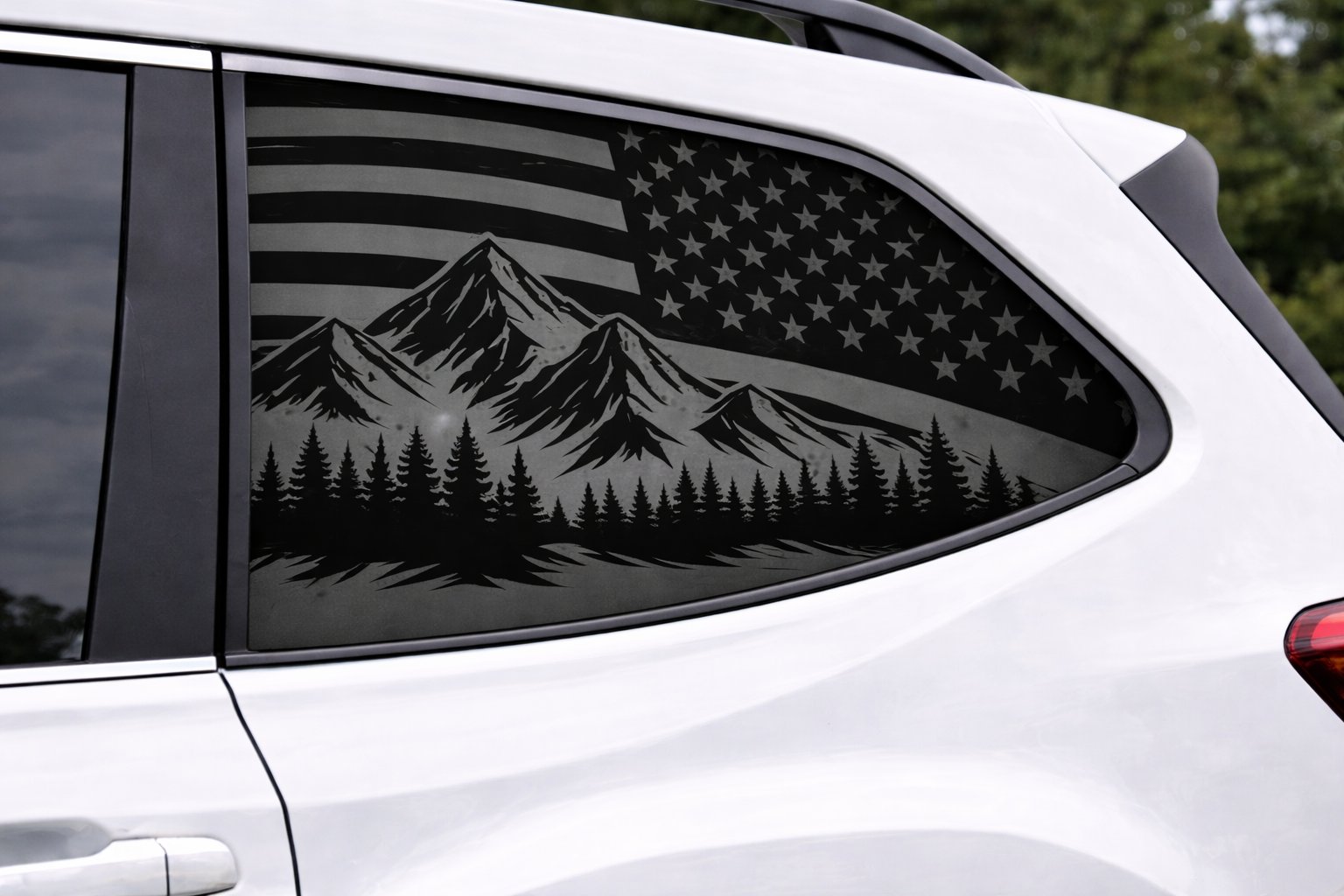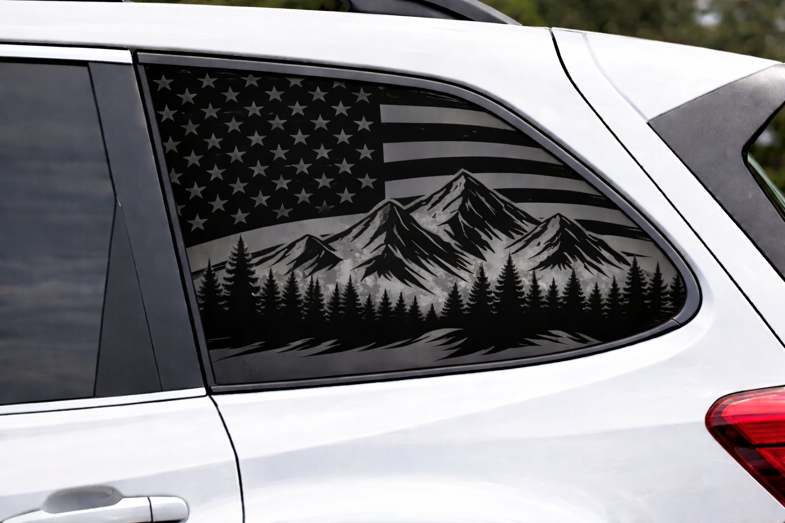Give your vehicle, helmet, cooler or window a rugged, patriotic look with this bold American flag mountain and evergreen tree decal. The striking silhouette combines a distressed flag motif with a mountain peak and lone evergreen for an outdoorsy, adventurous accent that stands out from a distance while keeping a clean, high-end appearance — perfect for trucks, Jeeps, RVs, ATVs, laptops and more. Cut from premium Oracal 651 vinyl, this decal is UV- and weather-resistant with a durable finish for easy cleaning and long-lasting color. The high-opacity film and strong adhesive deliver a professional, bubble-free result when applied correctly; transfer tape and step-by-step instructions are included. For best results, thoroughly clean the application surface, use a squeegee or firm pressure to apply, and apply heat for tight curves or edges.